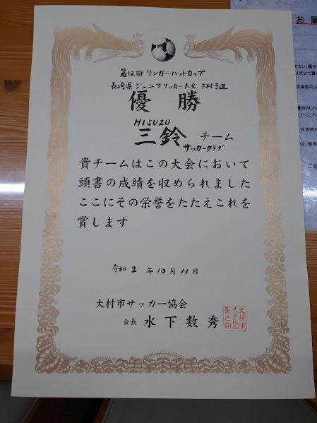 三鈴サッカークラブ(そう、この時のチーム名は漢字で三鈴だった)元年の2020年10月11日、リンガーハット杯大村市予選で優勝してしまったのだ。